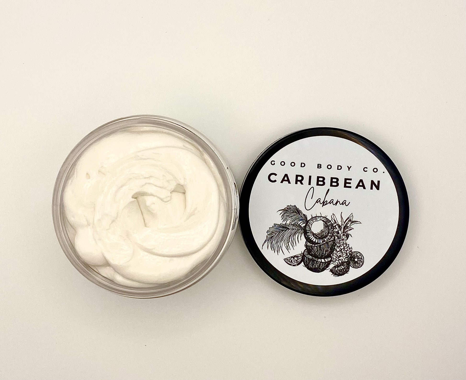 Experience the tropical luxury of Caribbean Cabana Whipped Body Butter from Good Body Co.. This organic, non-greasy body moisturizer deeply hydrates and nourishes the skin while leaving a refreshing Caribbean-inspired scent. Perfect for daily self-care, it helps your skin feel soft, smooth, and healthy without any heavy residue.